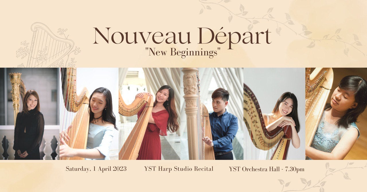 Nouveau départ describes the feeling of hope and excitement that comes with starting something new, just like how our harpists go on to discover their own paths. In this recital, experience the artistic growth of our harpists over the years, as well as new collaborations that are explored through the colours of the harp.