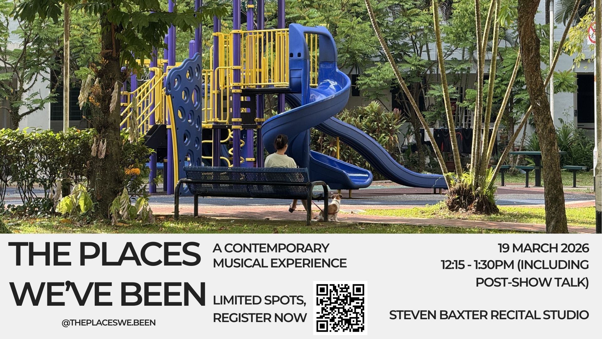 Welcome to The Places We’ve Been. Through a series of contemporary musical works that explore various locations in our everyday lives, you are invited to a session of remembering and reliving – through concrete, nature and everything in between.
