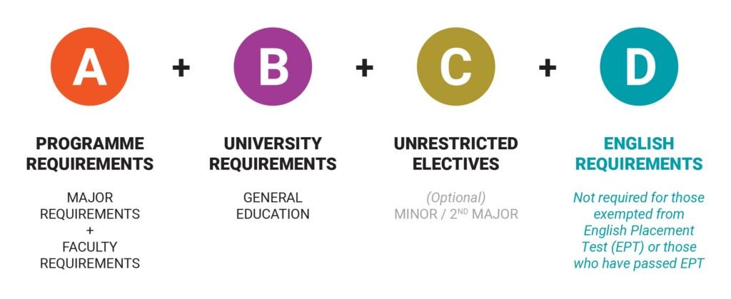 These Unrestricted Elective (UE) Requirement allows students to explore greater breadth or depth in any subject and at any level. Students may use these courses to meet the requirements for a specialisation, minor, second major, or double degree.